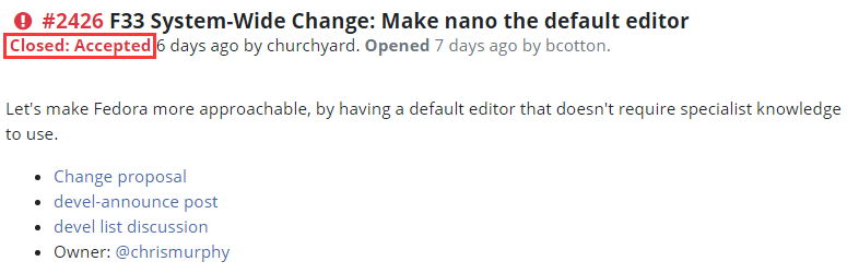 除了上述这个提案,FESCo 在上周还批准了一些其他值得关注的提案:
