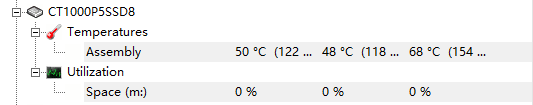 空盘状态下,HDTune Pro 的全盘读写曲线也是相当平稳。温控方面,英睿达 P5 1TB M.2 SSD 大多在五六十度之间。