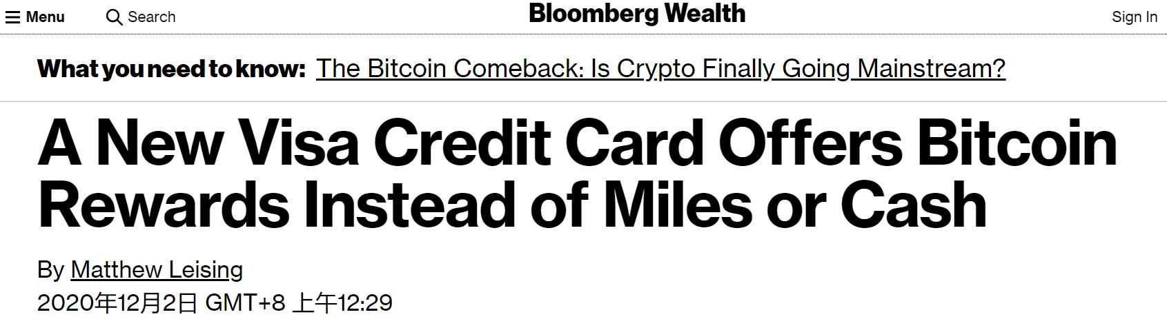 甚至连传统信用卡支付业务提供商Visa也在12月开通了新的用户消费奖励——返还比特币。