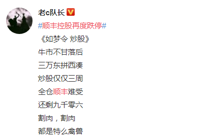 “顺丰控股再度跌停”上热搜 网友调侃“老板可以继续道歉”