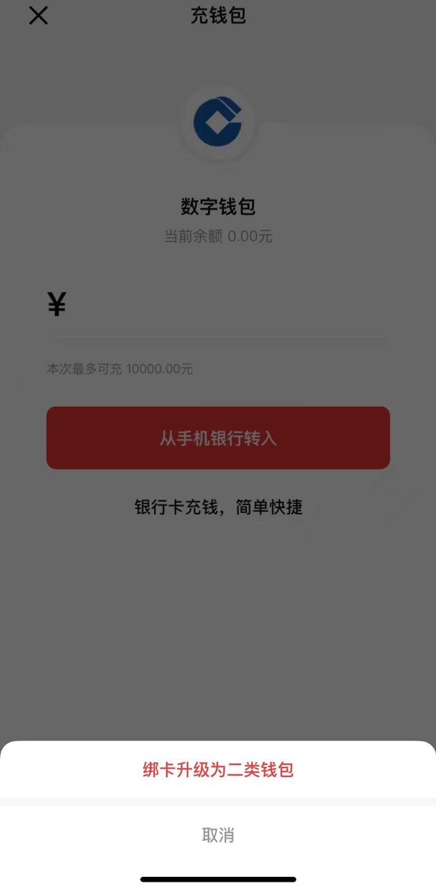 值得注意的是,在未绑定银行账户的情况下,直接用手机银行App转入一定金额,用户的数字钱包将被默认设置为四类钱包;而绑定了银行卡则会将数字钱包升级为二类钱包,同时其审批流程的实名程度也更高。