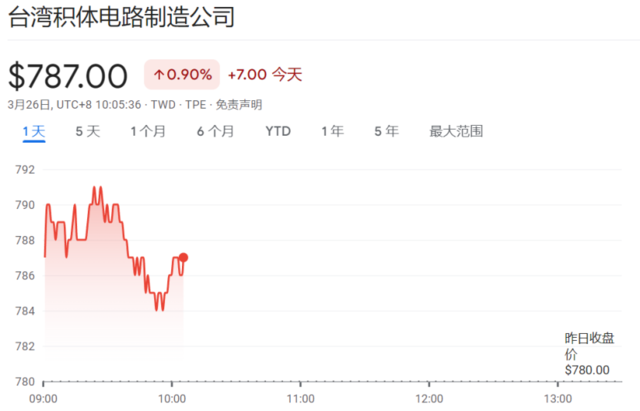 截至发稿,台积电股价为787元新台币,较大摩的目标价还有近10%的上涨空间。