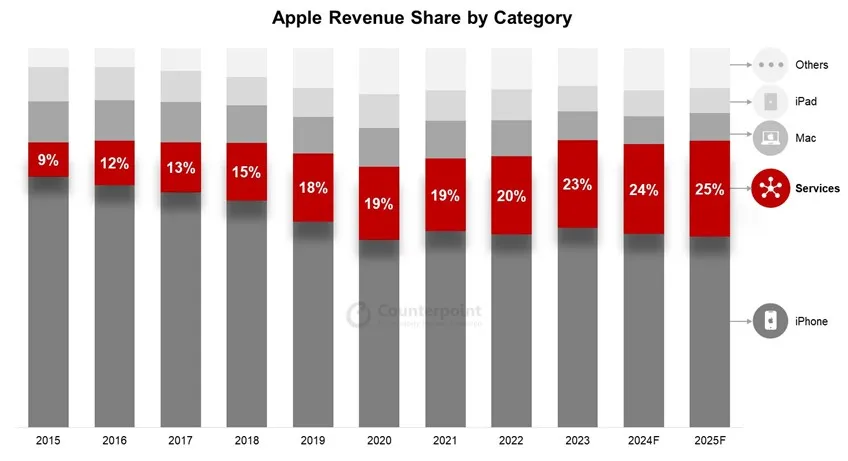 Counterpoint Research:苹果服务收入有望在2025年首次突破每年1000亿美元大关
