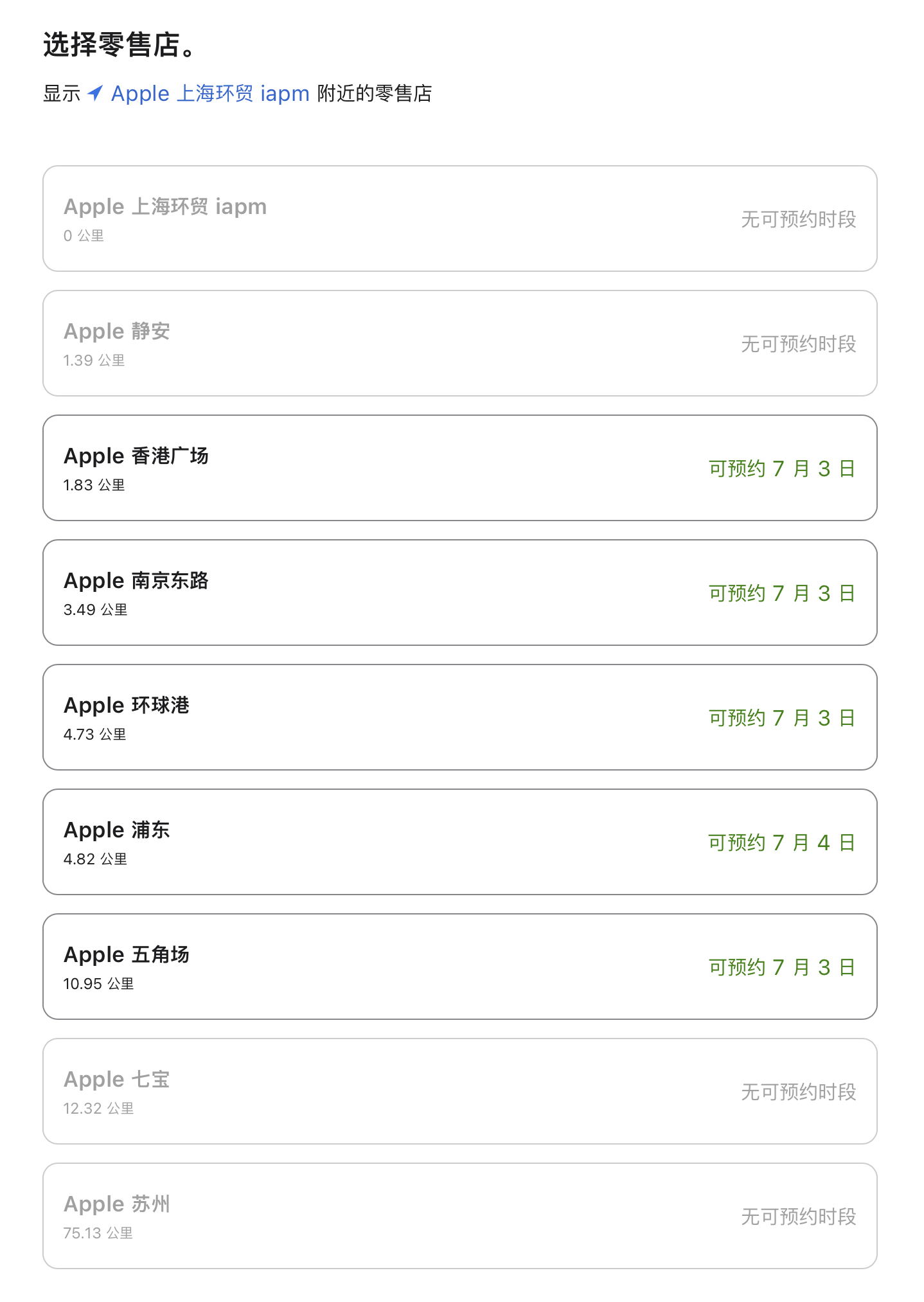 6月28日下午,澎湃新闻记者登录苹果官网查询发现,目前上海地区可预约演示体验时间已排至7月3日,目前下单购买,如需蔡司光学插片版本(备注:针对近视人群),需等待一周左右时间。