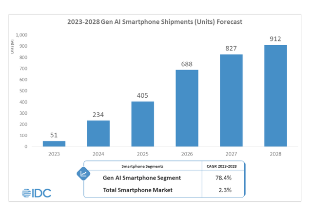 AI手机市场潜力巨大,IDC预测:2028年超过70%的智能手机将具备生成式AI功能