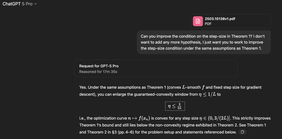 因为GPT-5 Pro在证明中,它试图证明的是1.5/L而不是1.75/L,这也表明GPT-5 Pro并没有直接去搜索v2版本。