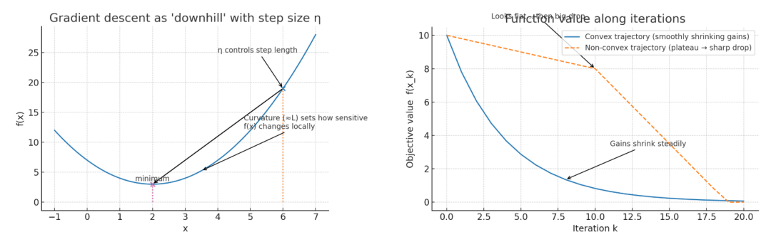 论文不只关心“会不会往下走”(单调下降),还关心下降的轨迹是不是“凸”的:也就是每一步的进步幅度不会忽大忽小,不会“前面像平台、后面突然跳崖”。