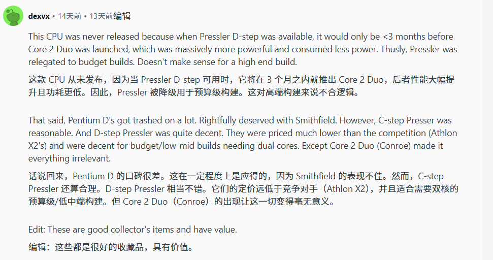 这款处理器的另一个有趣之处在于,它代表了NetBurst架构的巅峰之作,但公众从未见过,NetBurst架构因热设计功耗和性能限制而声名狼藉,这可能是这款处理器最终被放弃的原因之一。
