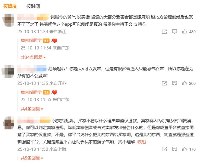 也有人他“搞流量”,詹同学也正面回应解释说,事情是1号发生的,他憋到11号才说。期间多次联系客服,都没得到主动跟进和解决,直到闲鱼专员判定他“输了”,还把责任扣到他头上,这才忍无可忍发出来。