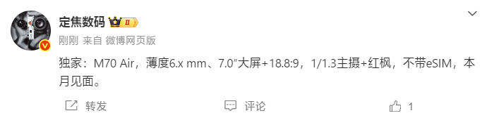 在苹果发布iPhone Air之后,华为的第一款Air也来了。据博主定焦数码爆料,华为Mate 70 Air将在本月登场,机身厚度只有6.x mm,主打超轻薄。