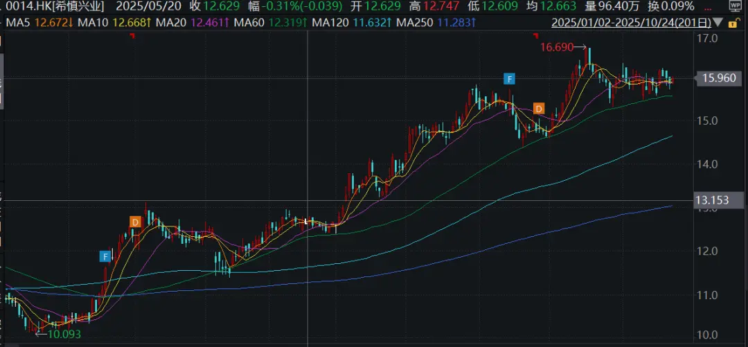 值得一提的是,今年希慎兴业股价累涨超46%。截至发稿,公司股价报15.96港元,市值约为164亿港元。