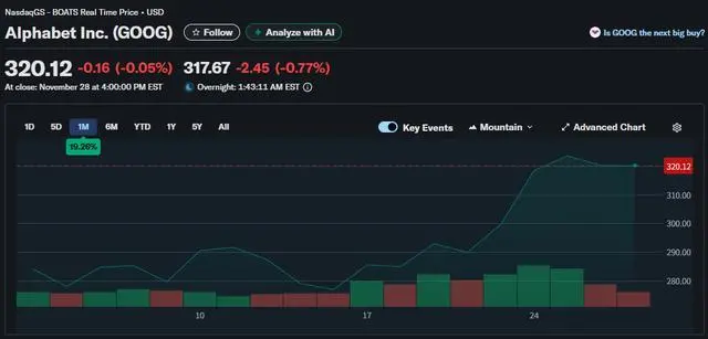要说上个月谁是科技巨头里最大的赢家,世超提名Google应该没人有意见吧?靠着性能炸裂的 Gemini 3,短短半个月,股价蹭蹭涨不说,还在竞技场内拳打 OpenAI,竞技场外脚踢英伟达。