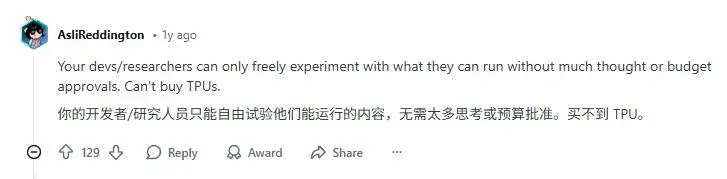 对于大多数只想赶紧把模型跑起来的中小厂来说,与其费劲巴拉地去适配 TPU,甚至根本搞不到,直接买英伟达芯片,反而是最省事的选择。