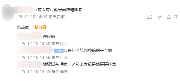 部分网友猜测可能与当天穿着高跟鞋有关,也有人提及其家族健康情况,但相关说法未获证实。