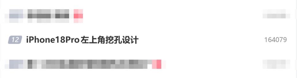 微博话题“iPhone 18 Pro左上角挖孔设计”上了热搜榜,引发热议。据媒体报道,苹果计划对iPhone 18 Pro系列的外观进行重大调整,该机将彻底摒弃“灵动岛”药丸形挖孔,转而采用左上角单打孔方案,同时搭载屏下Face ID技术,以此来提升用户体验。