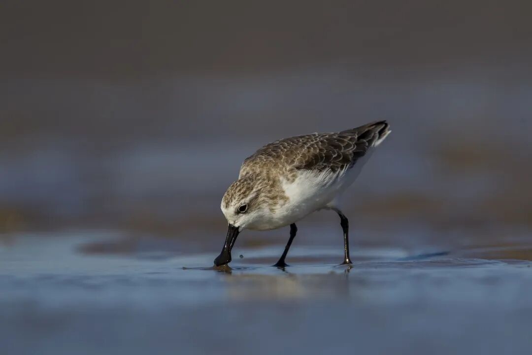 勺嘴鹬(Calidris pygmaea)是一种只有麻雀大小的小型水鸟。它最明显的特征,就是它的黑色长嘴末端膨大,活像一把小勺,观鸟人给它的昵称也是“勺子”。它会在湿地的浅水滩涂一边向前行走,一边低头用这把小勺左右划动,捞起苔藓和小虫吃掉,非常可爱。