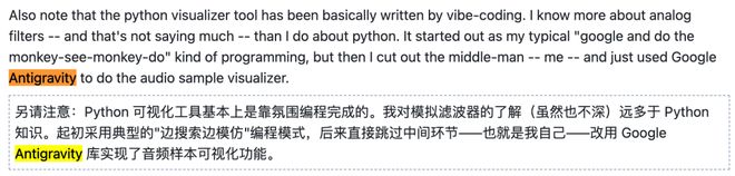 Linus用的是Google的Antigravity——2025年底发布的新一代AI编程工具。