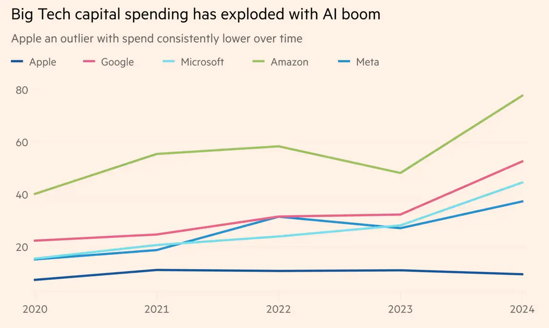 苹果的AI支出远低于其他同行