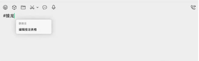 想要发起群接龙,用户只能在群聊内输入“#接龙”关键词来出发该功能,随后点“编辑接龙表格”进行接龙即可。
