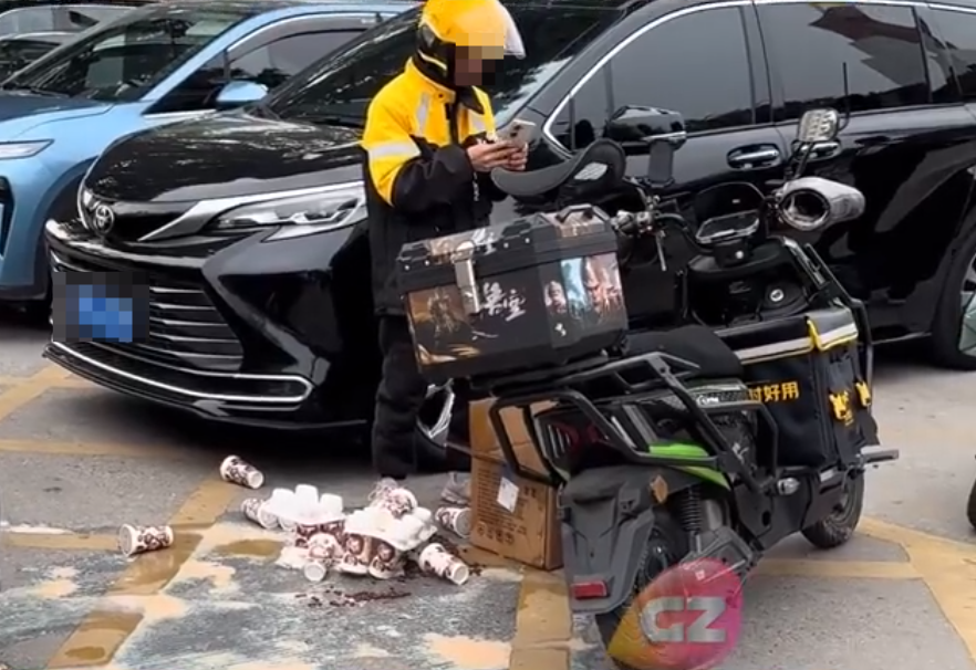 外卖小哥打翻32杯奶茶原地发愣 品牌方回应:会优化包装