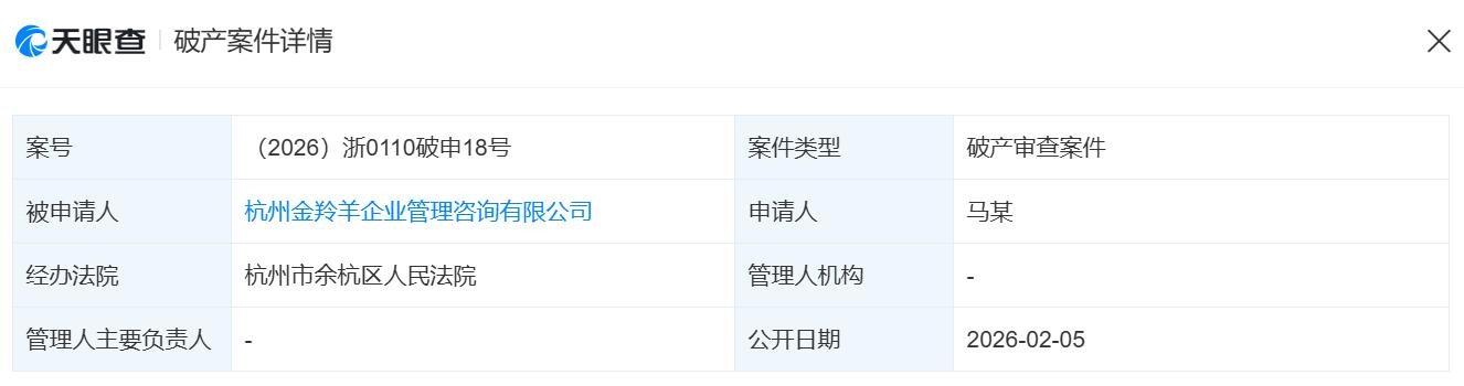 天眼查显示,自嗨锅关联公司杭州金羚羊企业管理咨询有限公司新增破产审查案件,申请人是马某,经办法院是杭州市余杭区人民法院。据悉,杭州金羚羊企业管理咨询有限公司法定代表人是蔡红亮,注册资本是15000万人民币,成立日期是2018年5月份。