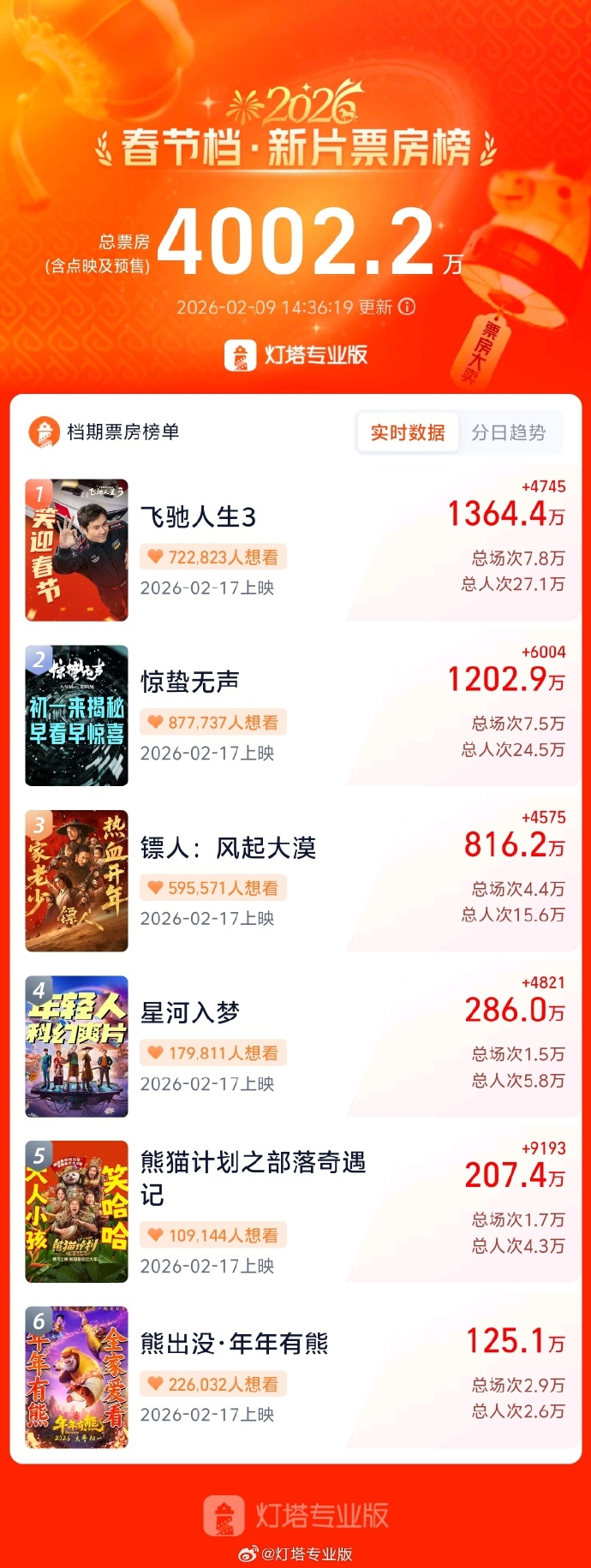 2026春节档新片票房破4000万 《飞驰人生3》一马当先