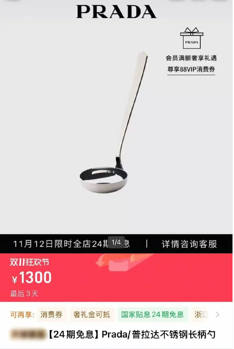 更早前,有网友在社交网站发帖称,Prada一款不锈钢长柄勺标价1300元。不少网友吐槽价格太高。