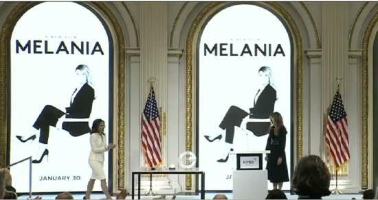 1 月 28 日,梅拉尼娅携新片敲响纽约证券交易所开市钟,纽交所 CEO Lynn Martin 与董事会主席 Jeffrey Sprecher 陪同在侧。在交易所随后举行的庆祝活动上,梅拉尼娅发表讲话称:
