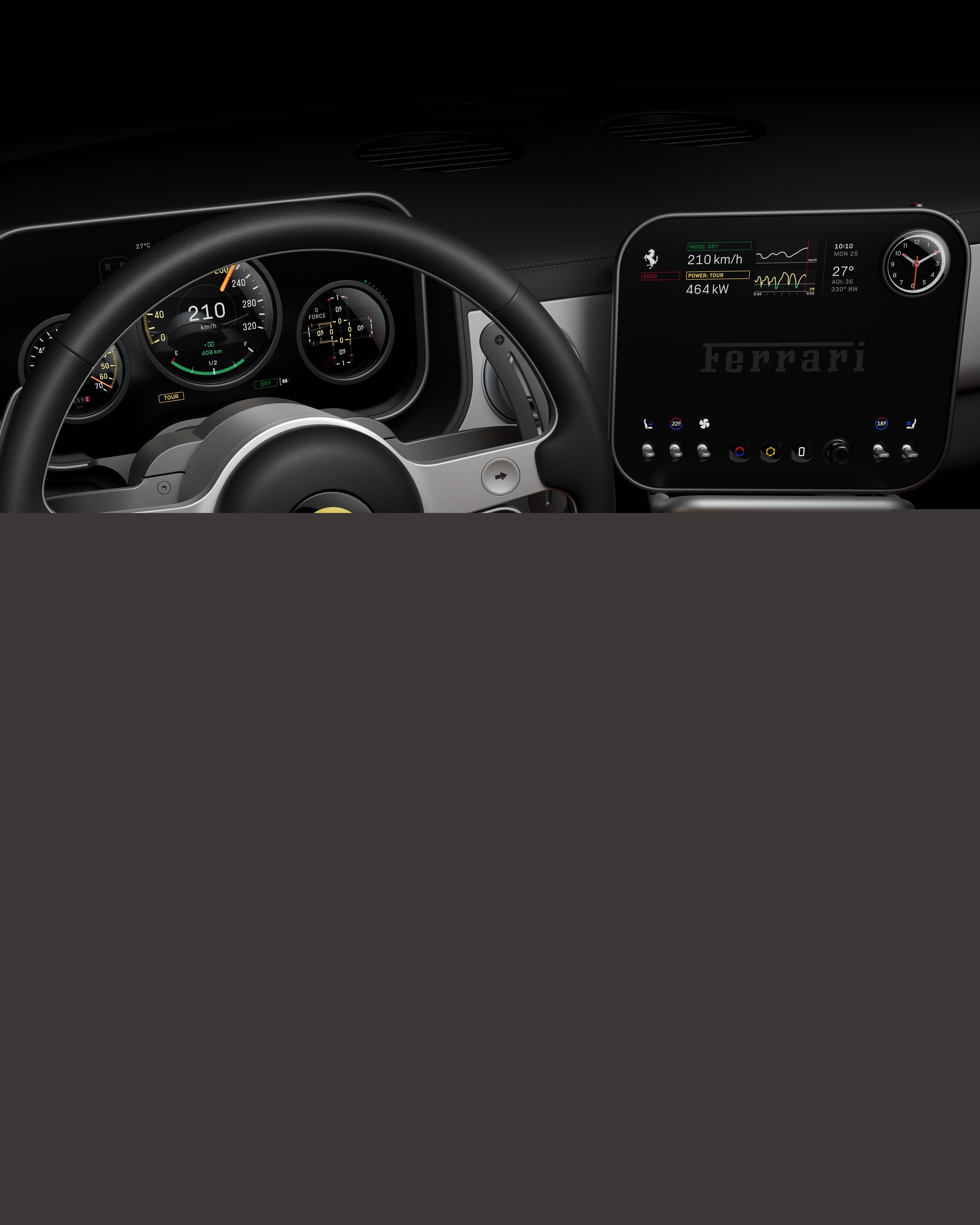 基于这种理念,乔纳森・伊夫负责的法拉利纯电跑车Luce拒绝大屏堆砌,仅提供一块中控屏,同时保留大量实体开关和旋钮,并且所有物理按键设计差异化触感,方便精准快捷的盲操。