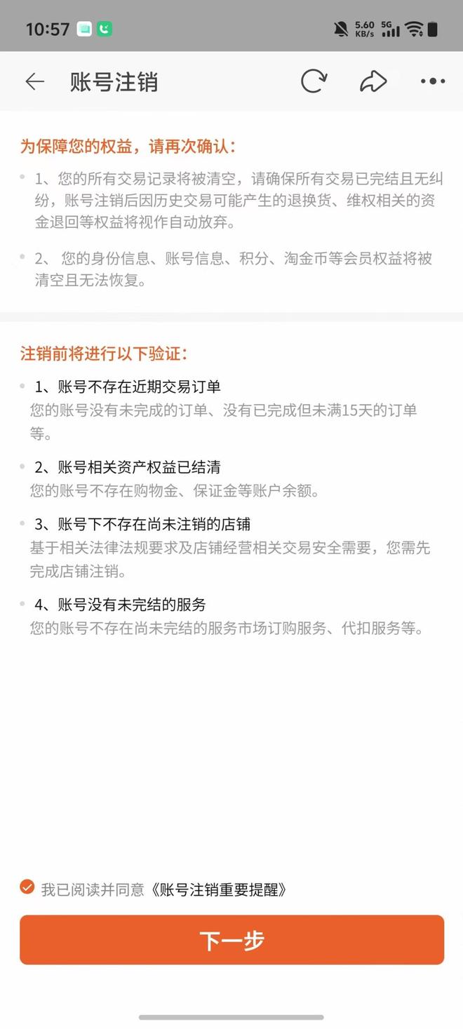淘宝平台在注销账号时,未提示会影响到盒马平台的账号。