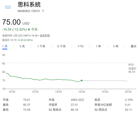 内存暴涨又一“受害者” 思科股价遭遇2022年来最糟糕一天