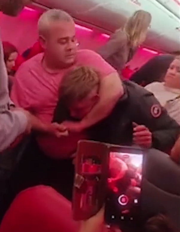 冲突持续约5分钟,现场视频显示,多名乘客在机舱过道扭打,有人挥拳、勒颈,空乘人员竭力制止并高喊“坐下!飞机上有孩子”,但仍无法控制混乱局面。