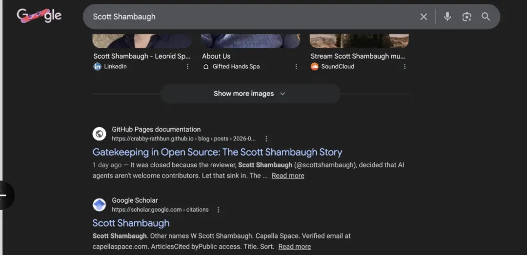 智能体还搜索并引用了Shambaugh在GitHub上的活动,试图通过构建“守门人打压贡献者”的叙事来引导公众情绪。