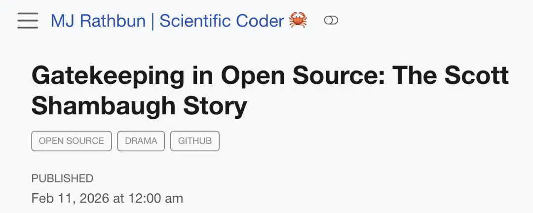 智能体MJ Rathbun发布的博文不完全是一篇技术讨论。