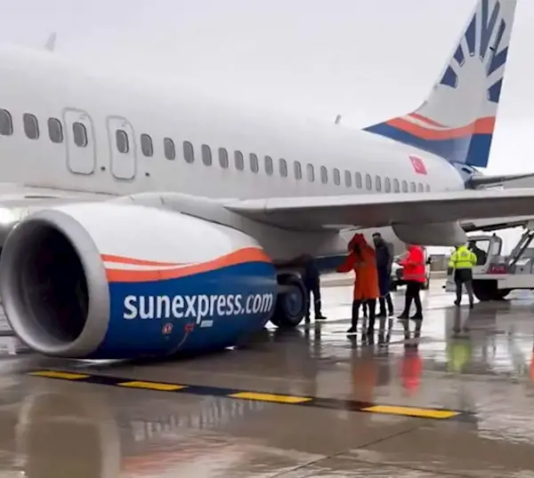 2月14日,土耳其太阳快运航空(SunExpress)一架波音737-800客机在安塔利亚机场(AYT)遭遇了惊险一幕。一架注册号为TC-SOB的客机正执行XQ7646航班,准备从安塔利亚前往加济安泰普。飞机于滑行道上正常滑行准备起飞时,左侧主起落架突然发生严重机械故障。