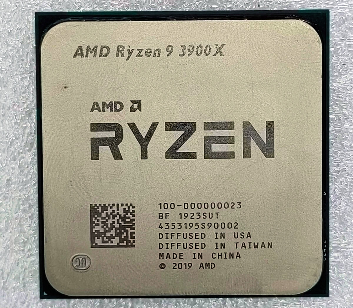 包装盒侧面露出的处理器,表面丝印明显不对,虽然具体型号被遮住了,但是从序列号上看对应的其实是锐龙9 3900X。