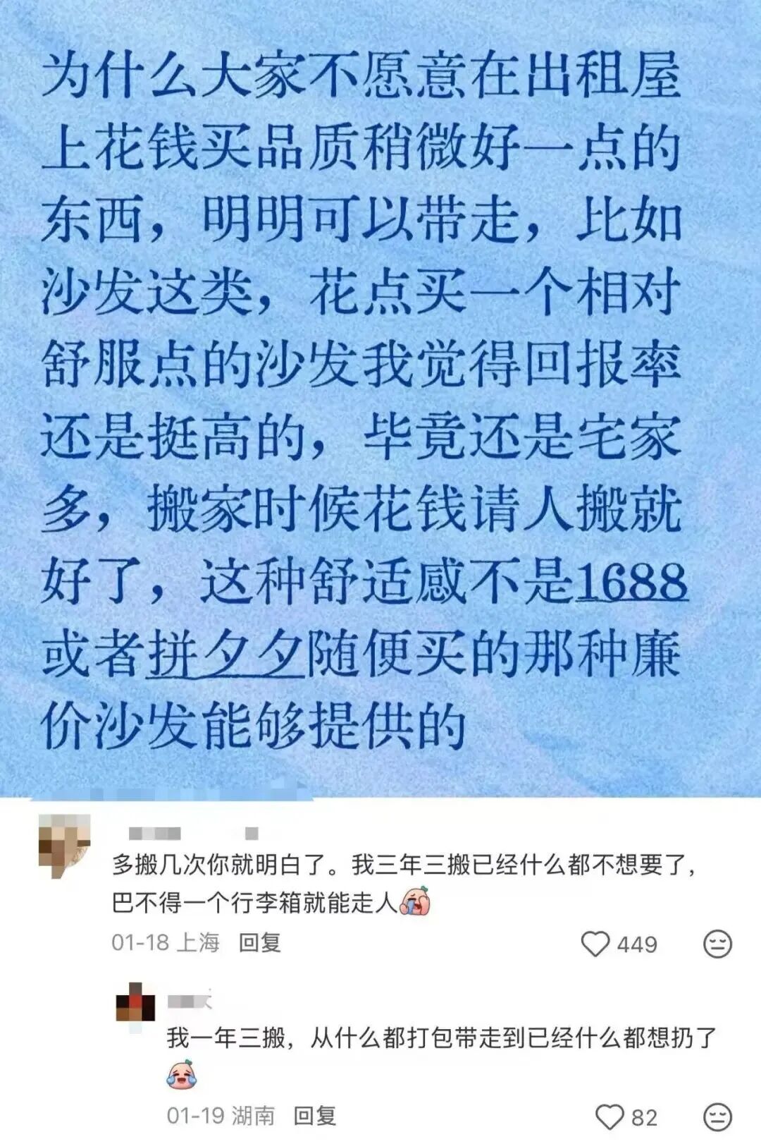 在小K的实际体验中,租房子的人是“不配”买家具的。