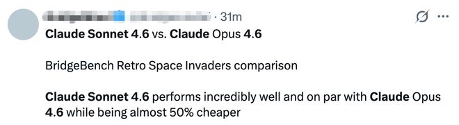 一位海外开发者称:“Claude Sonnet 4.6以更低的成本实现了接近Opus的智能水平,这意义非凡,适用于预算有限的团队。”另一位网友称:“Anthropic的真正策略已显露:Opus争夺王座,Sonnet蚕食市场。