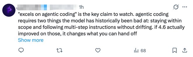 在Agent编程方面表现出色”是值得关注的关键点。一位开发者称,Agent编程需要模型一直以来都难以做到的两件事:保持在模型范围内以及不偏离地执行多步骤指令。如果4.6版本确实改进了这两点,那么它就能改变模型的交付方式。