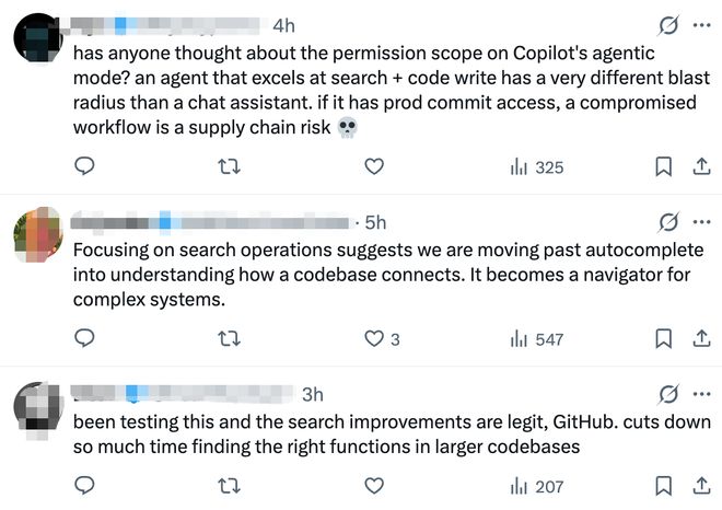 不过也有人担心Copilot Agent模式的代码安全问题。一位网友称,擅长搜索和代码编写的Agent与聊天助手的影响范围截然不同,如果它拥有生产环境提交权限,那么一旦工作流程遭到破坏,就会对供应链构成风险
