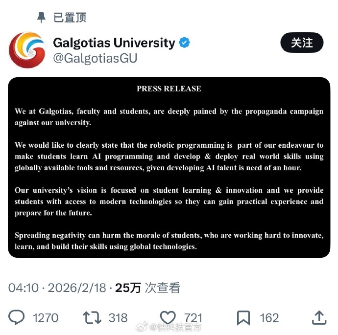 事件曝光后,校方先否认宣称过自主研发,随后在社交平台发布声明,承认设备确系从宇树科技采购。