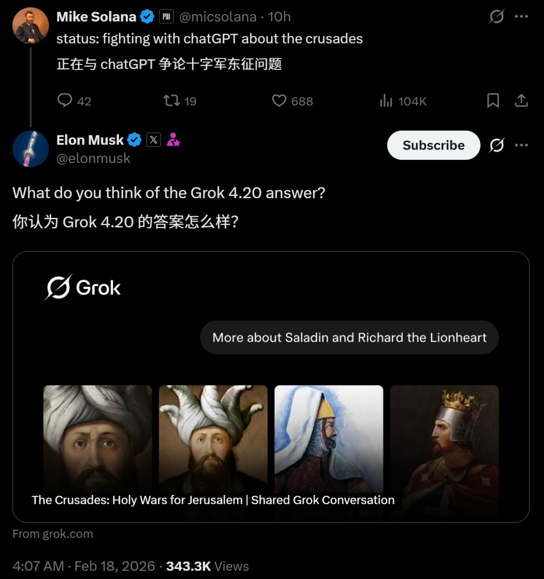 他在X上开始了一轮颇具马斯克风格的测评轰炸。