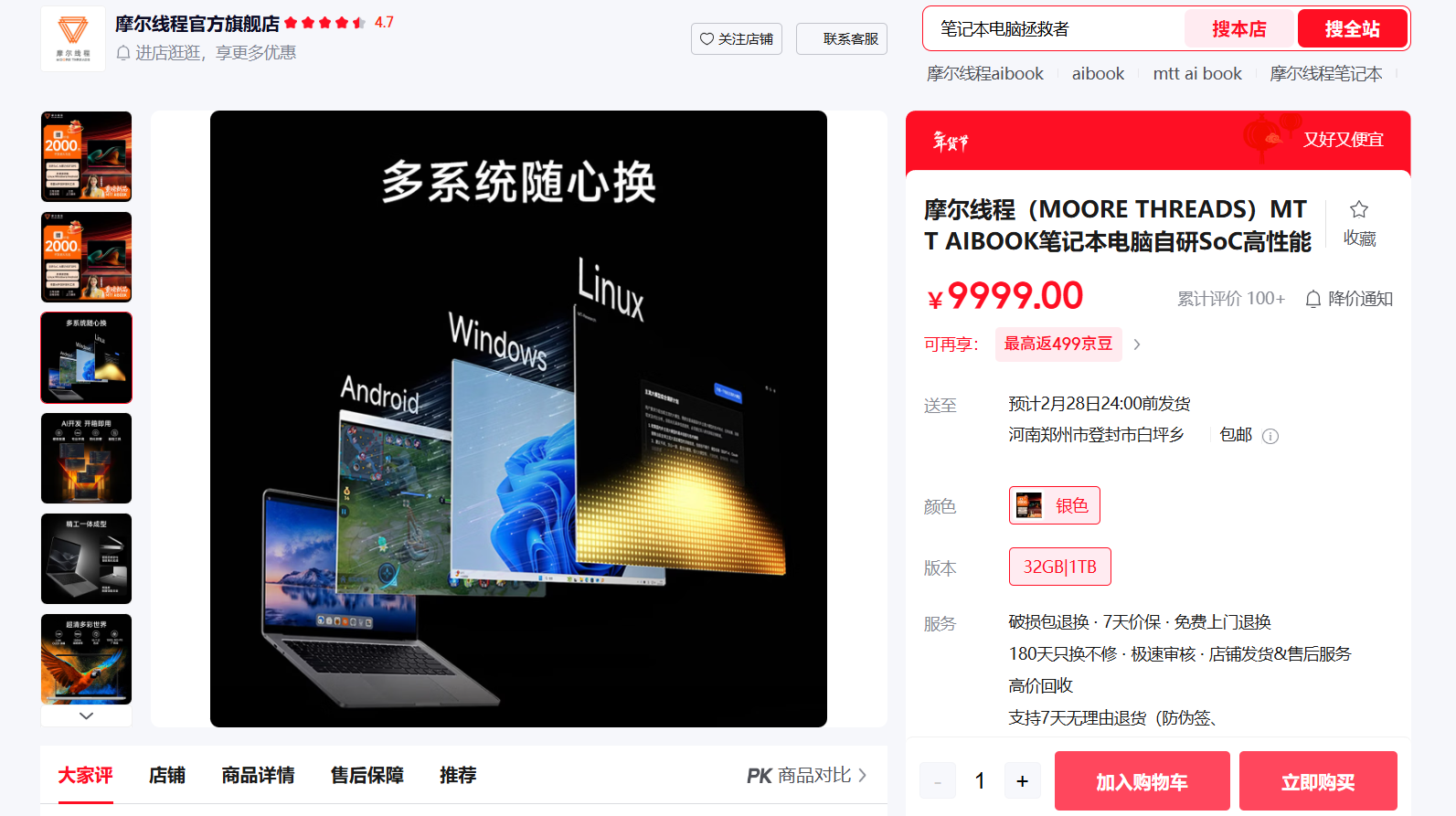 摩尔线程自研笔记本首发“长江”处理器 Linux/Android/Windows随心换