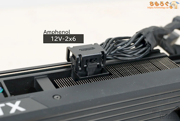 它的显卡供电接口在插入电源线后,还用了Amphenol的固定器,直接锁死在显卡上,从而完全避免了弯折、松动、脱落等意外的发生。