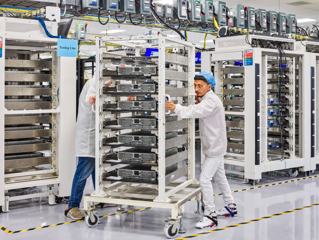 供应链的终点是庞大的组装工厂,苹果及其代工合作伙伴每年在此生产数亿台设备。苹果与富士康合作,在休斯顿建成了一条规模适中的AI服务器生产线。该服务器将为苹果设备新增的更多AI功能提供算力支持。这条生产线每小时可生产约10台服务器