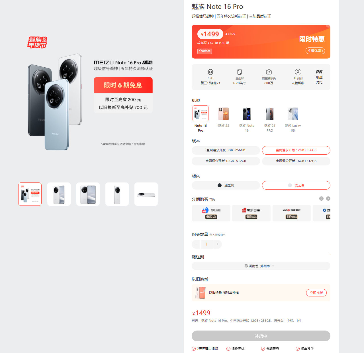 魅族官网已无手机可卖 显示补货、售罄