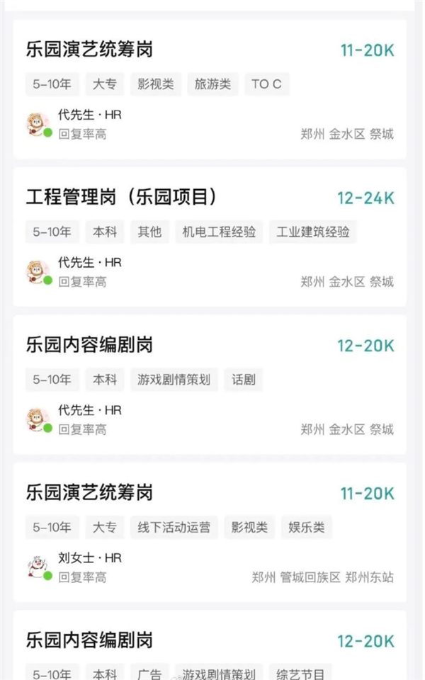 此前,蜜雪冰城已在招聘平台上线乐园相关岗位,涵盖演艺统筹、内容编剧、工程管理、周边产品等,部分岗位明确要求熟悉迪士尼、环球影城等头部乐园的 IP 演艺逻辑。