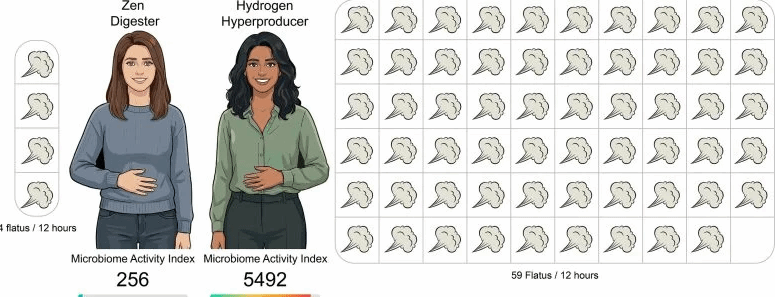 氢气高产者:放屁频繁的人群。研究此类群体可帮助科学家理解导致高气体产生的生物学和微生物因素。