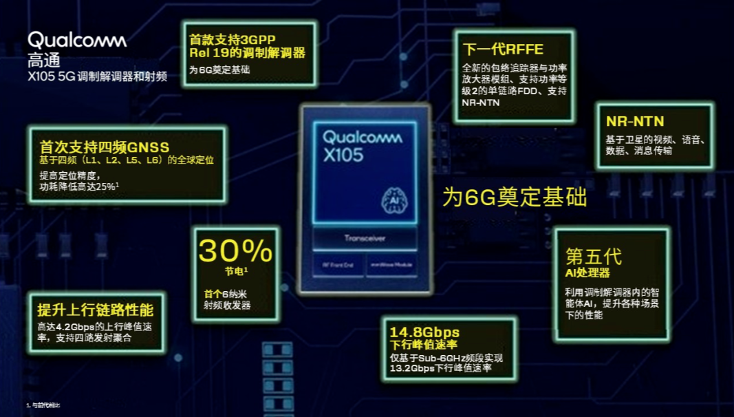今日晚间,高通公司正式发布高通X105 5G调制解调器及射频系统,这是全球领先的5G Advanced平台,配备行业首款面向3GPP Release 19就绪的调制解调器,为6G的开发与测试奠定基础。