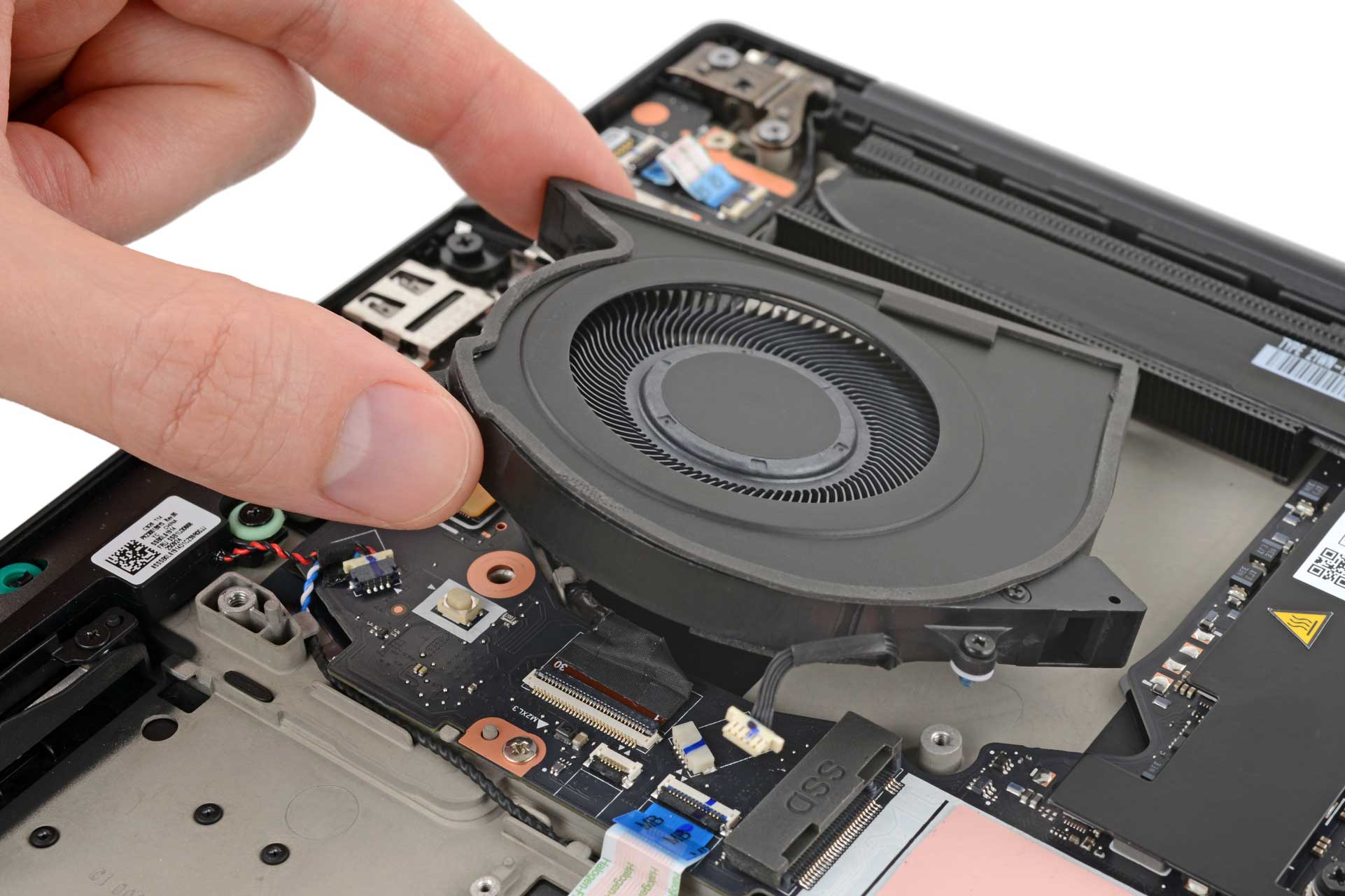 在具体设计上,新一代 T 系列以模块化和易拆易换为核心思路,构建出围绕易获取、可替换部件的维修生态。 其中包括:几乎免工具即可完成更换的电池,采用业界标准 M.2 接口的 SSD 存储,极大简化步骤的键盘更换流程,可快速拆装的 LPCAMM2 内存模组,简化结构的显示总成维修流程,以及具备独立可更换风扇的模块化散热系统。 机身两侧的 Thunderbolt 接口则采用完全模块化设计,可单独更换磨损严重的接口,被 iFixit 视为本代产品在高损耗 I/O 设计上的一大进步。